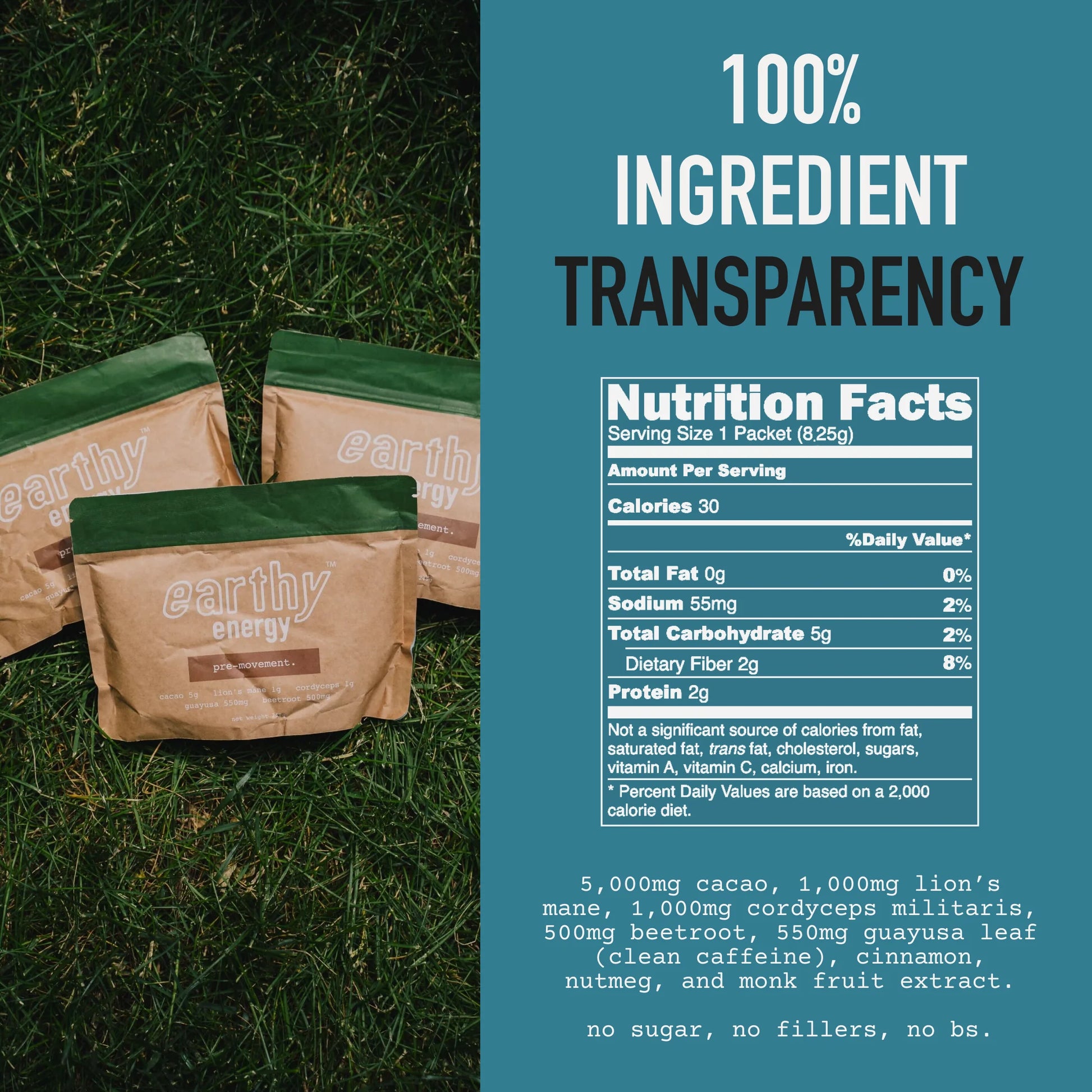 earthy is setting new standards for transparency in the supplement industry. we believe you deserve to know exactly what is going into your body, and how those ingredients were sourced and processed. we tell you the exact amount of each ingredient per serving so you can get the most out of your nutrition and supplements.